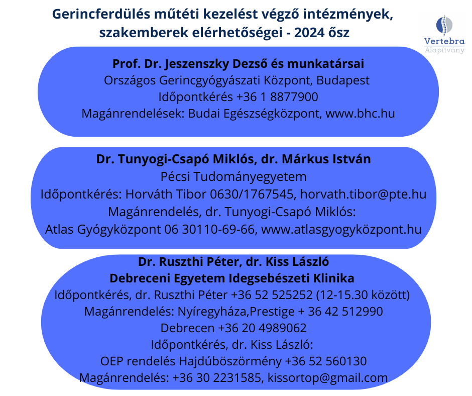 Az alábbiakban a gerincferdüléssel és különböző kezelési módokkal kapcsolatos legfontosabb információkat foglaltuk össze. Az egyes témáknál újabb videók és cikkek érhetők el. Az itt közzétett információkat tankönyvekből, illetve a terület neves szakembereinek cikkeiből, közleményeiből idézzük.