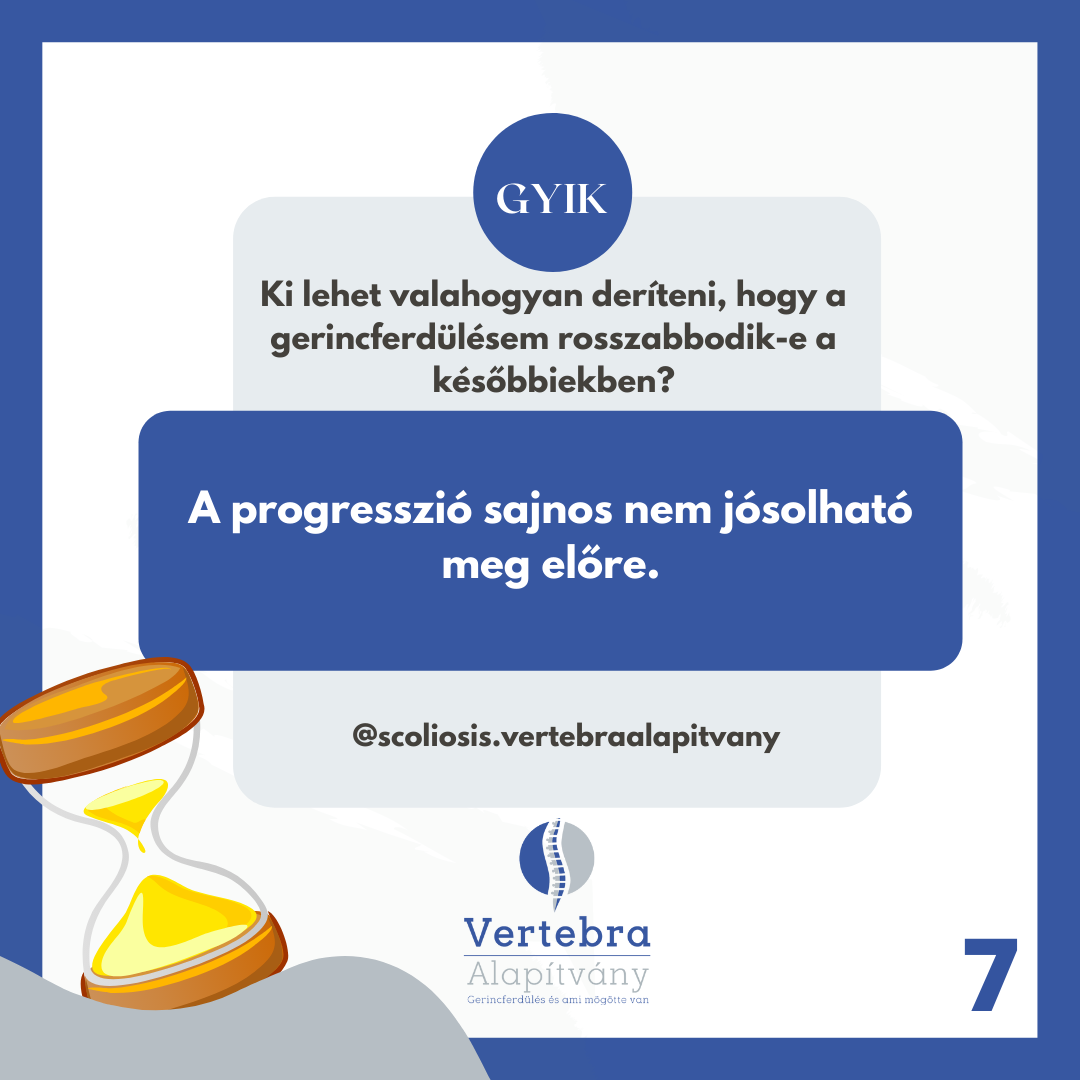 - jelentős progresszió (fél év alatt több, mint 5 Cobb-fok)